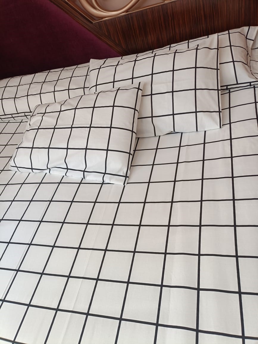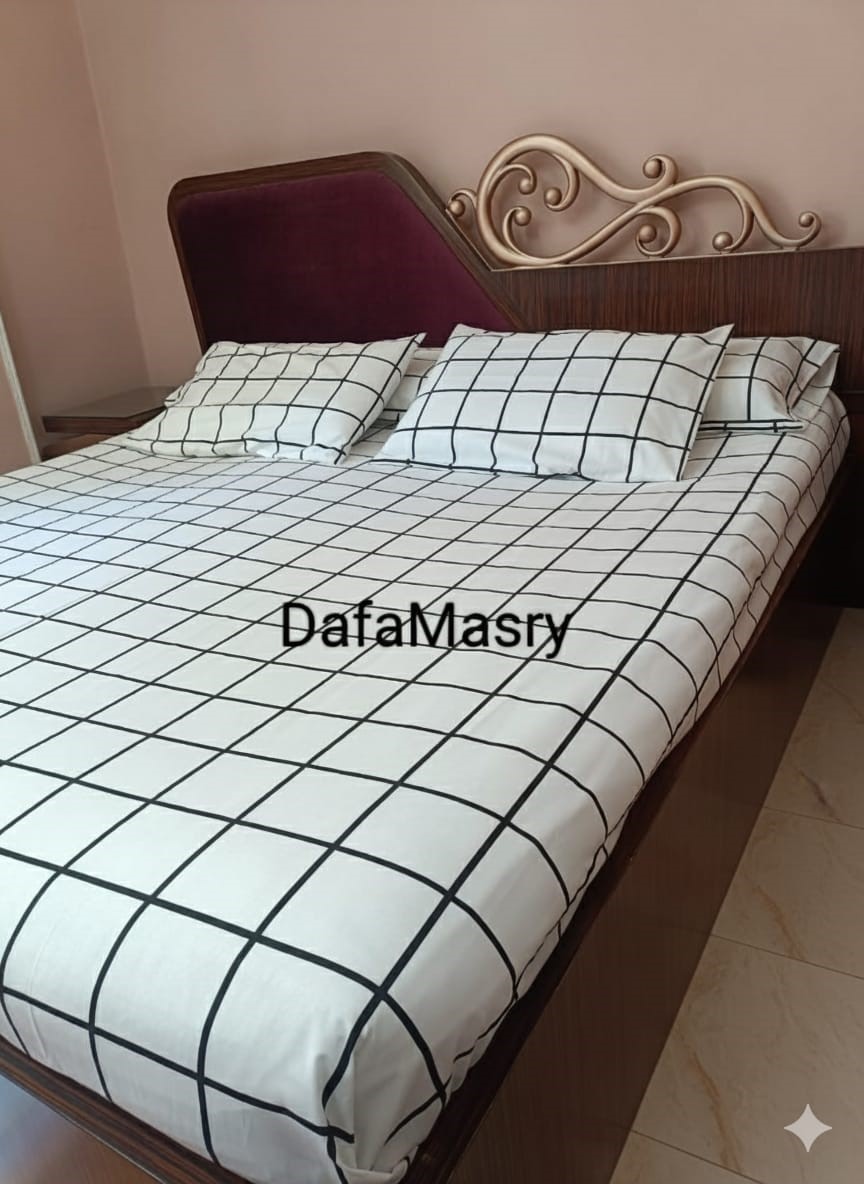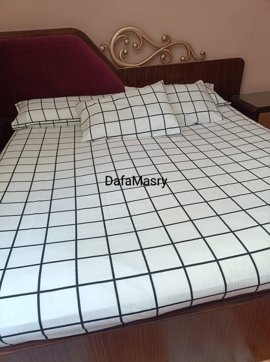 طقم سرير قطن كبير مودرن بنقشة مربعات (الشطرنج): يبرز التصميم العصري والنقشة المميزة.